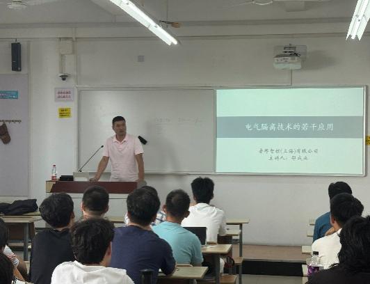 2025年10月11日上午,必威betway西汉姆联集成电路科学与工程专业方向《先进封装技术》课程邀请上海普邦智控有限公司邵成业专家走进课堂,在教学楼C210为集成电路科学与工程的研一同学贡献了一节以“电气隔离技术的若干应用”为主题的精彩课堂。课堂上,邵专家主要从四个方面给同学们讲述了隔离技术。一.隔离技术在自动化领域的若干应用研究。邵专家从小到日常生活中身边的例子充电器,大到国家航天技术的应用来介绍隔离技术,让学生们更快的了解到隔离技术是什么,怎么用,以及隔离技术的存在意义。二.隔离变压器若干技术与工艺。邵专家介绍了在隔离技术中用到的主要设备隔离变压器,包括变压器的发展历史,变压器的种类,变压器在设计过程中用到的工艺和技术等等,变压器在制造的过程中会有很多难点,比如电路的设计,保险丝的选择,材料的选择,一个小小的变压器集成了多个模块,拥有复杂的电路,设计一个变压器要有一个强大的理论基础,各个模块在变压器中的连接都需要复杂的电路去承接,不同的变压器所用到的技术还有所区别。邵专家展示具体的实物让学生对变压器的结构有了进一步的了解。三.变压器磁芯材料主要特征参数。邵专家更深入的讲解了变压器的核心