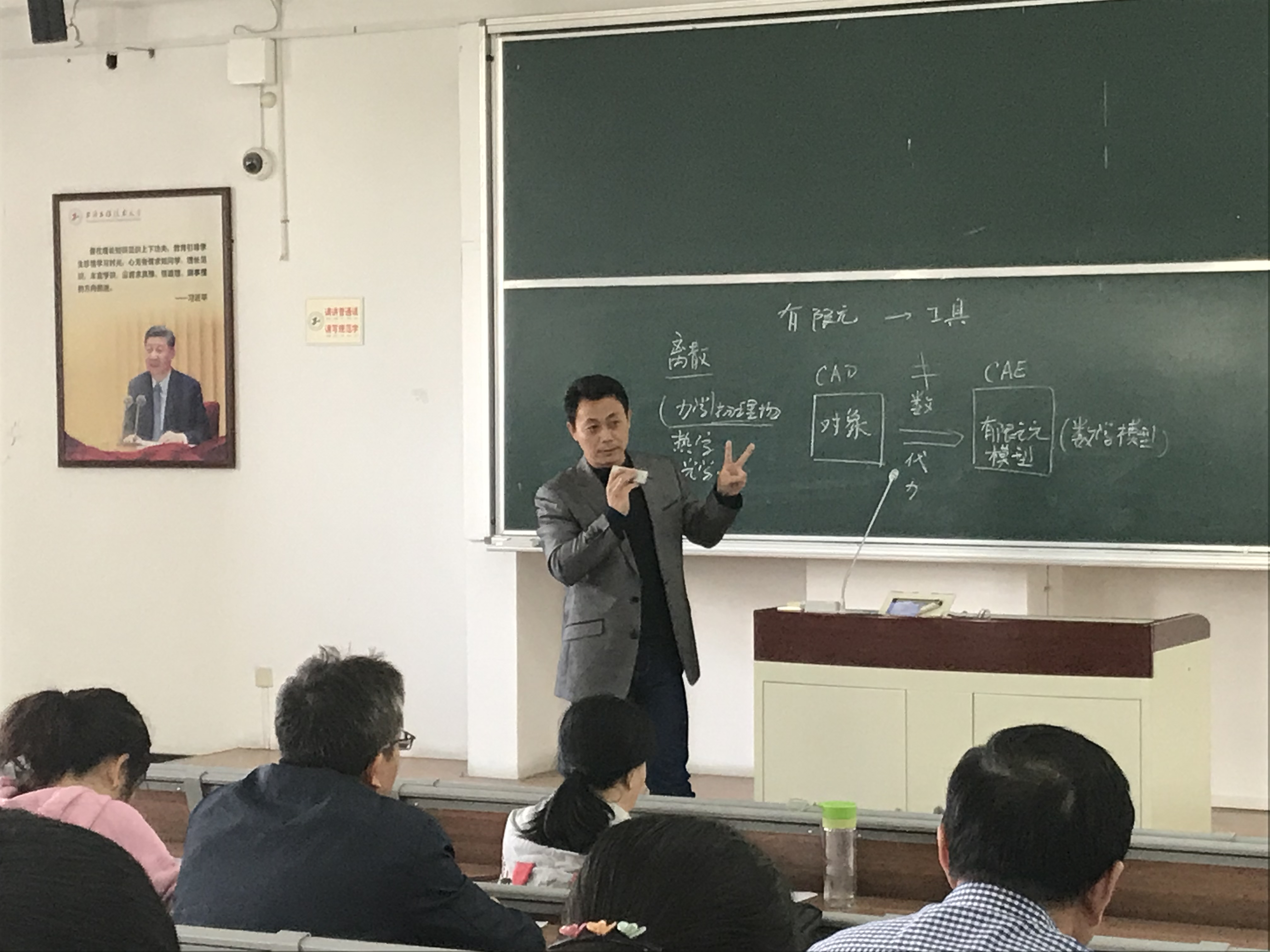 公开课上,四位教师分别讲授了《焊接过程测量与计算机控制》《塑性成型原理》《半导体制造技术》及《材料科学基础》这四门课程的部分内容。他们的授课重点突出、条理清晰,结合使用了板书和PPT,使授课的针对性、有效性、互动性有机结合,具有很好的示范作用。